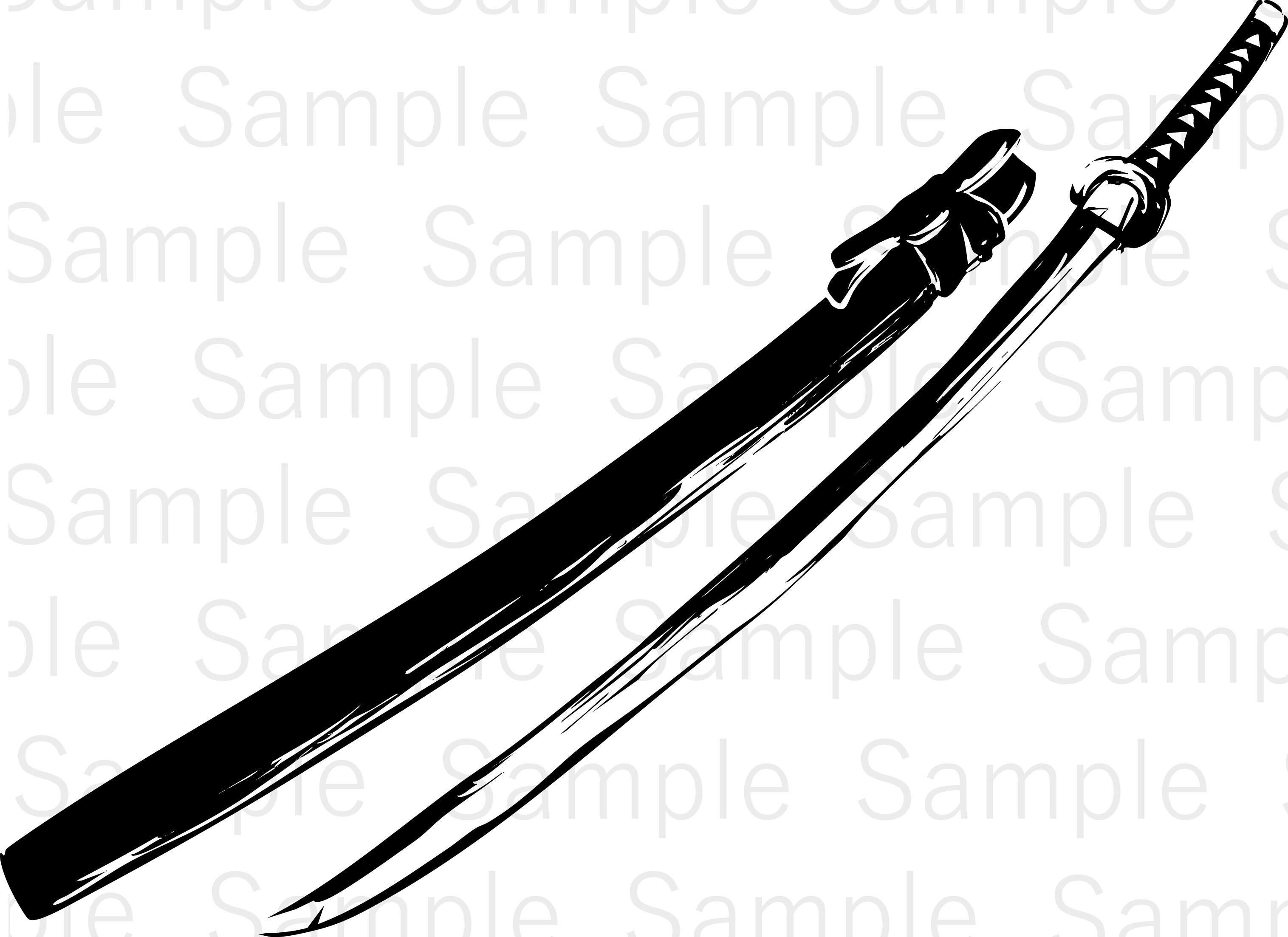 日本の伝統的な武器「刀(かたな)」を墨絵風に描いた素材です。