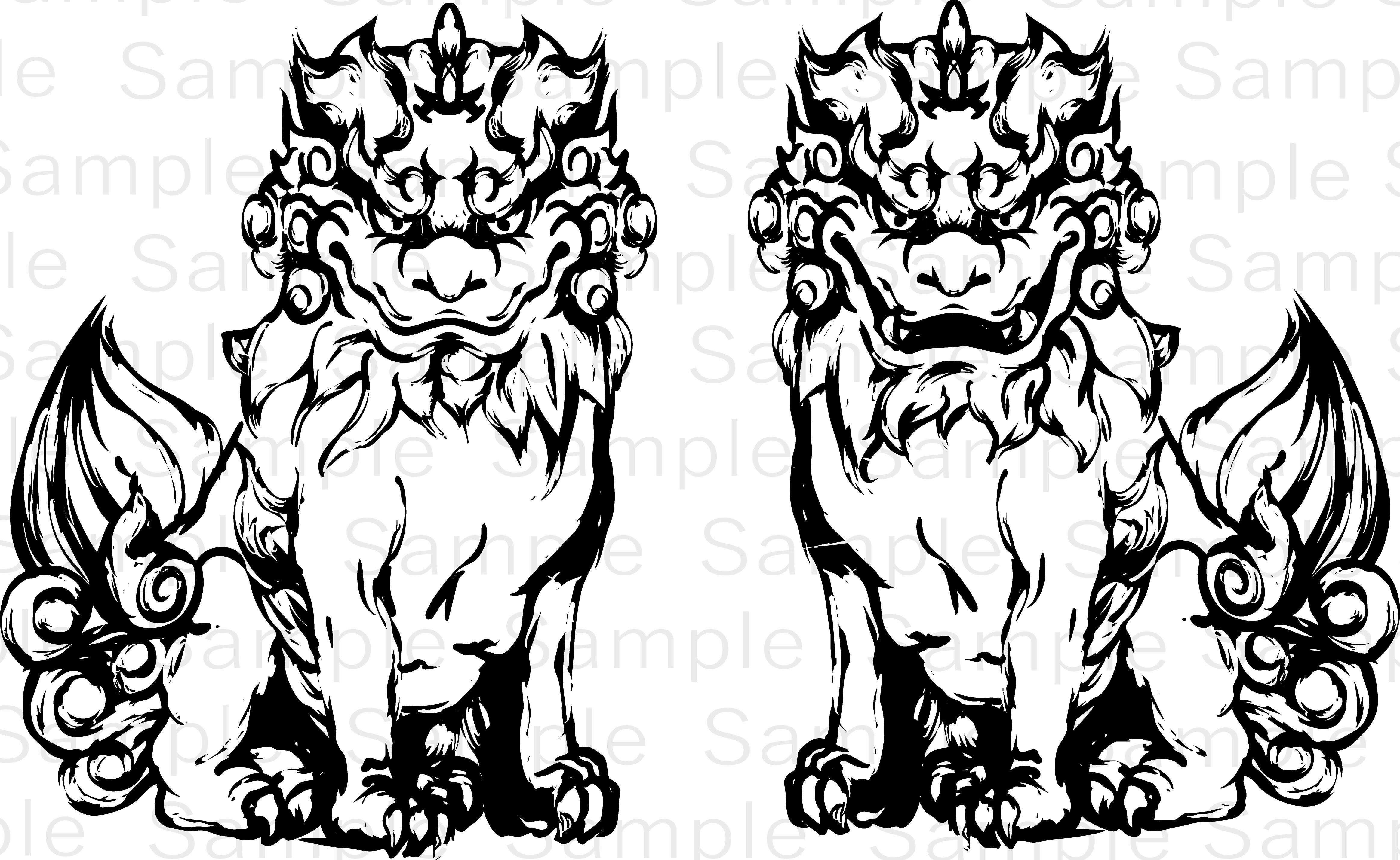 【関連タグ】墨絵 水墨画 狛犬 阿吽 守護 神社 寺院 和風 精神性 素材
