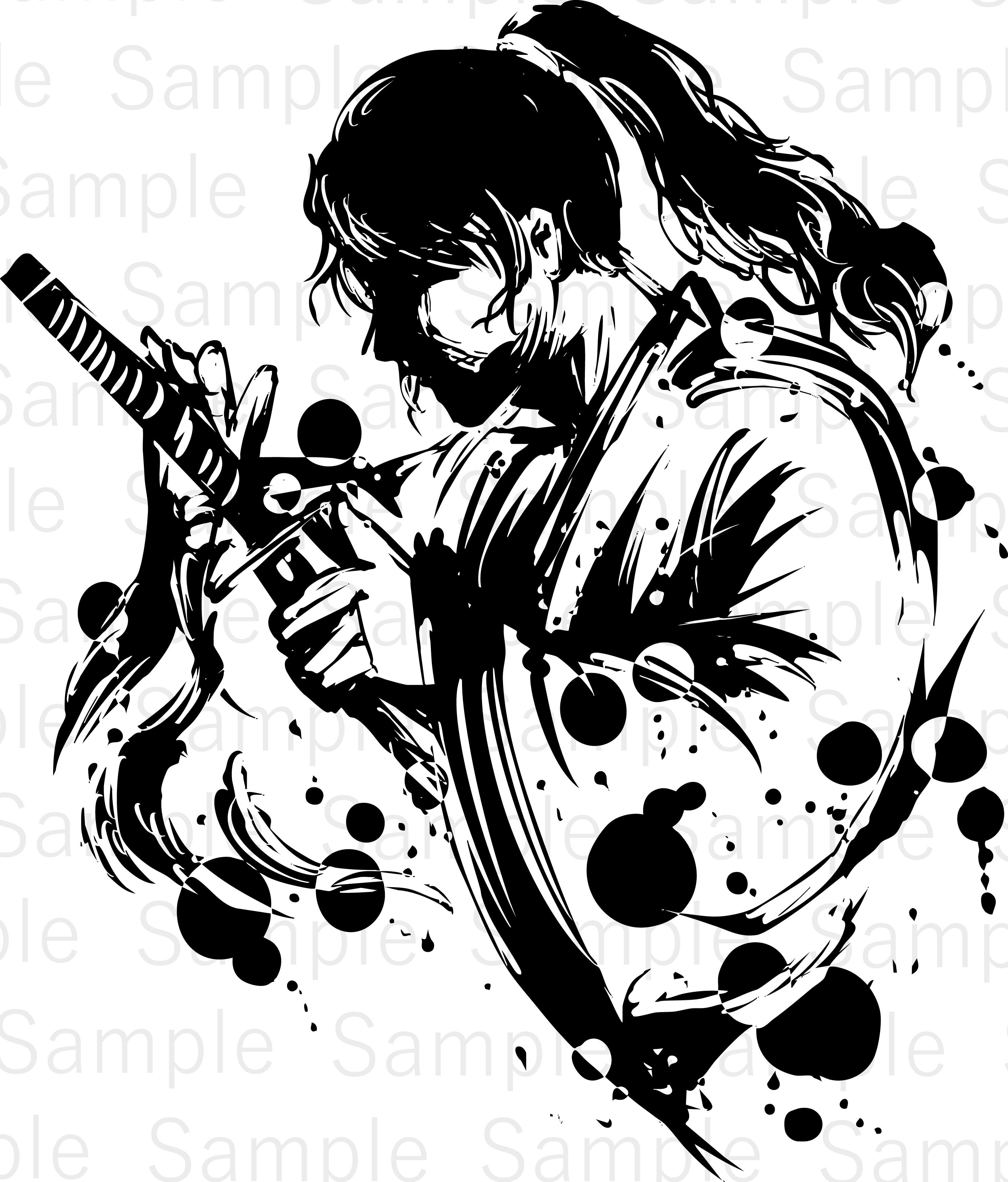 侍・武士・和服・刀・構え・精神性・墨絵・水墨画・和風・歴史など、静けさや緊張感をテーマにしたデザインにおすすめです。