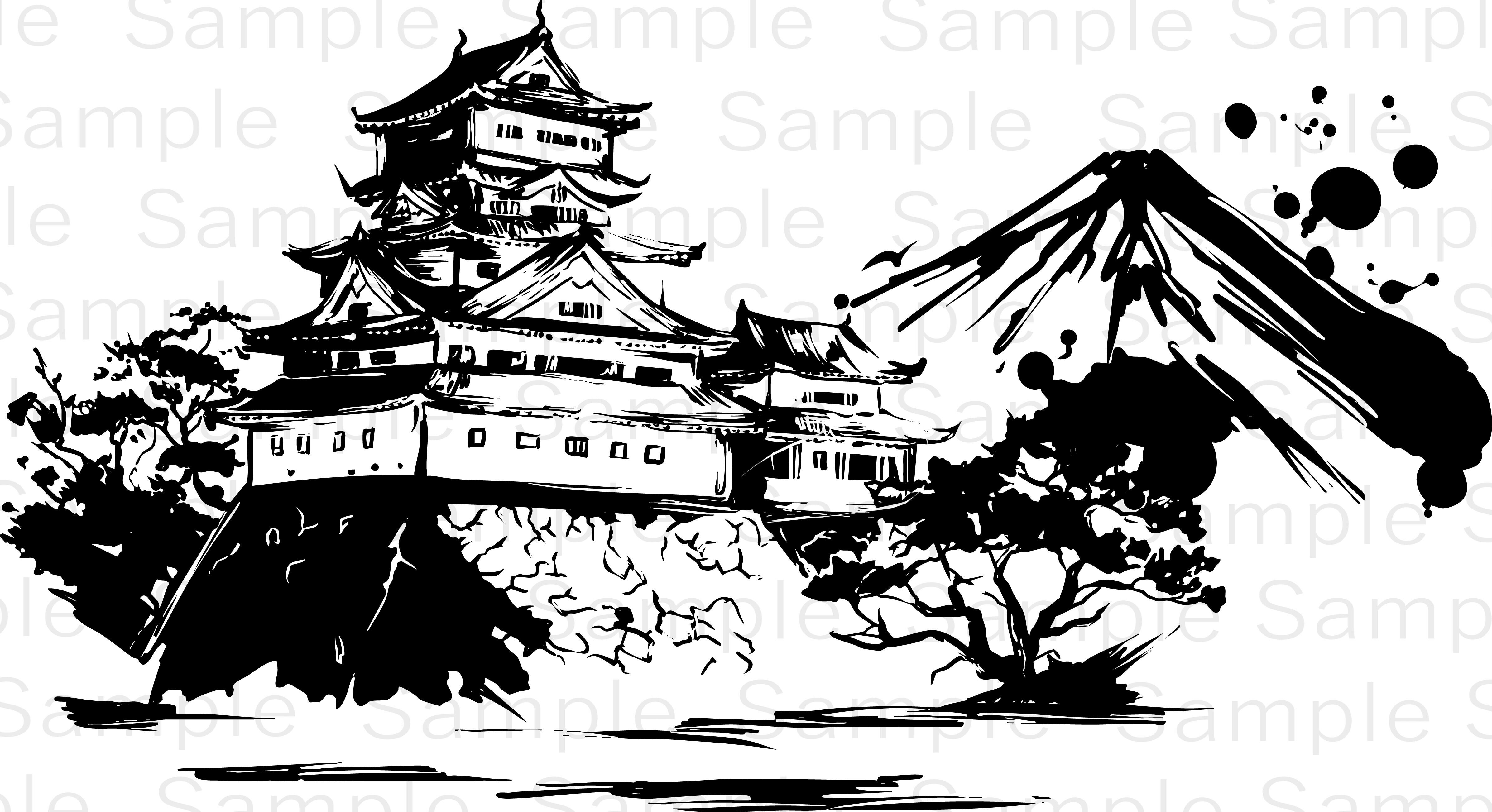 城・山・自然・歴史・墨絵・水墨画・和風・風景・静寂などをテーマにしたデザインにおすすめです。