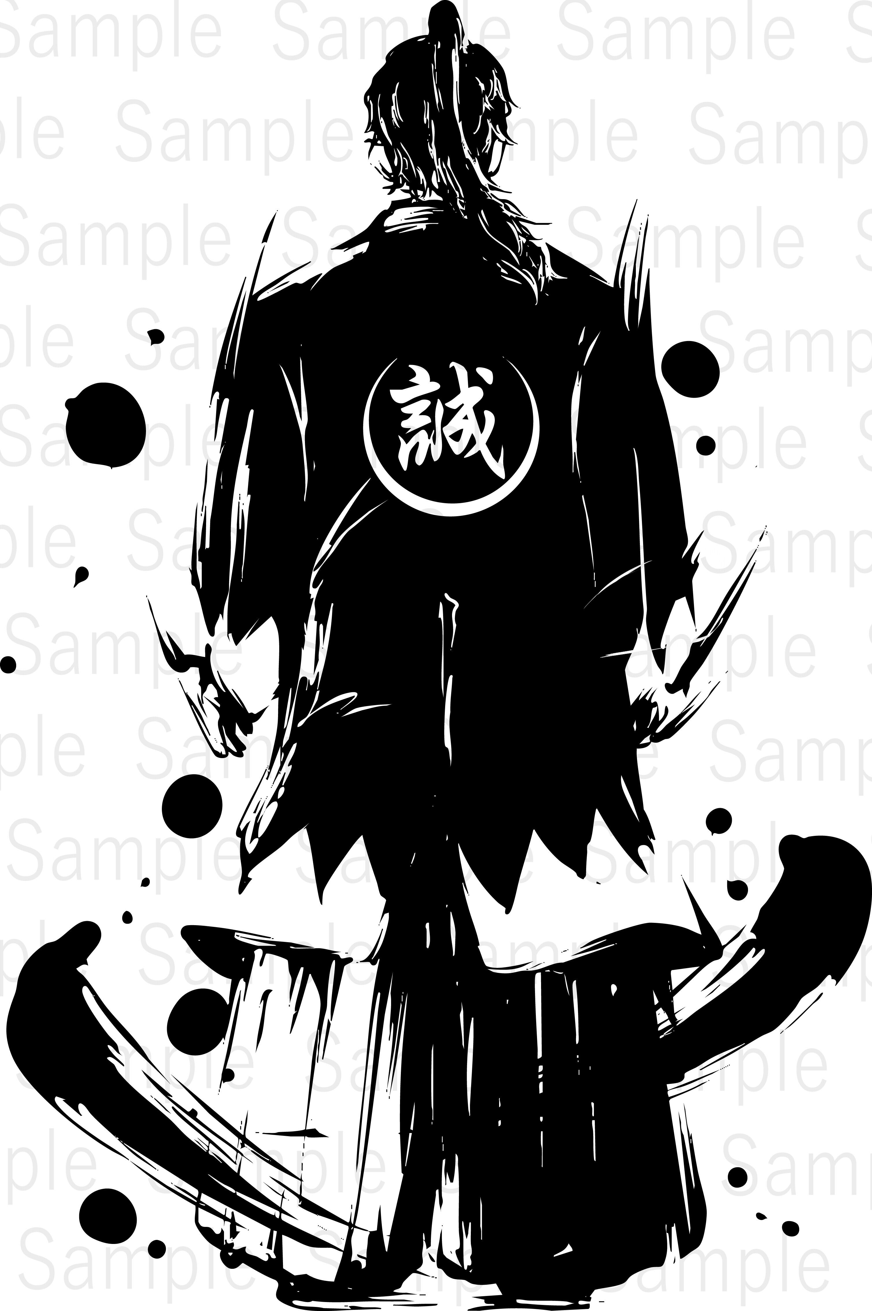 Tags: sumi-e, ink painting, Shinsengumi, samurai, makoto, haori, back view, Japanese style, loyalty, design material
