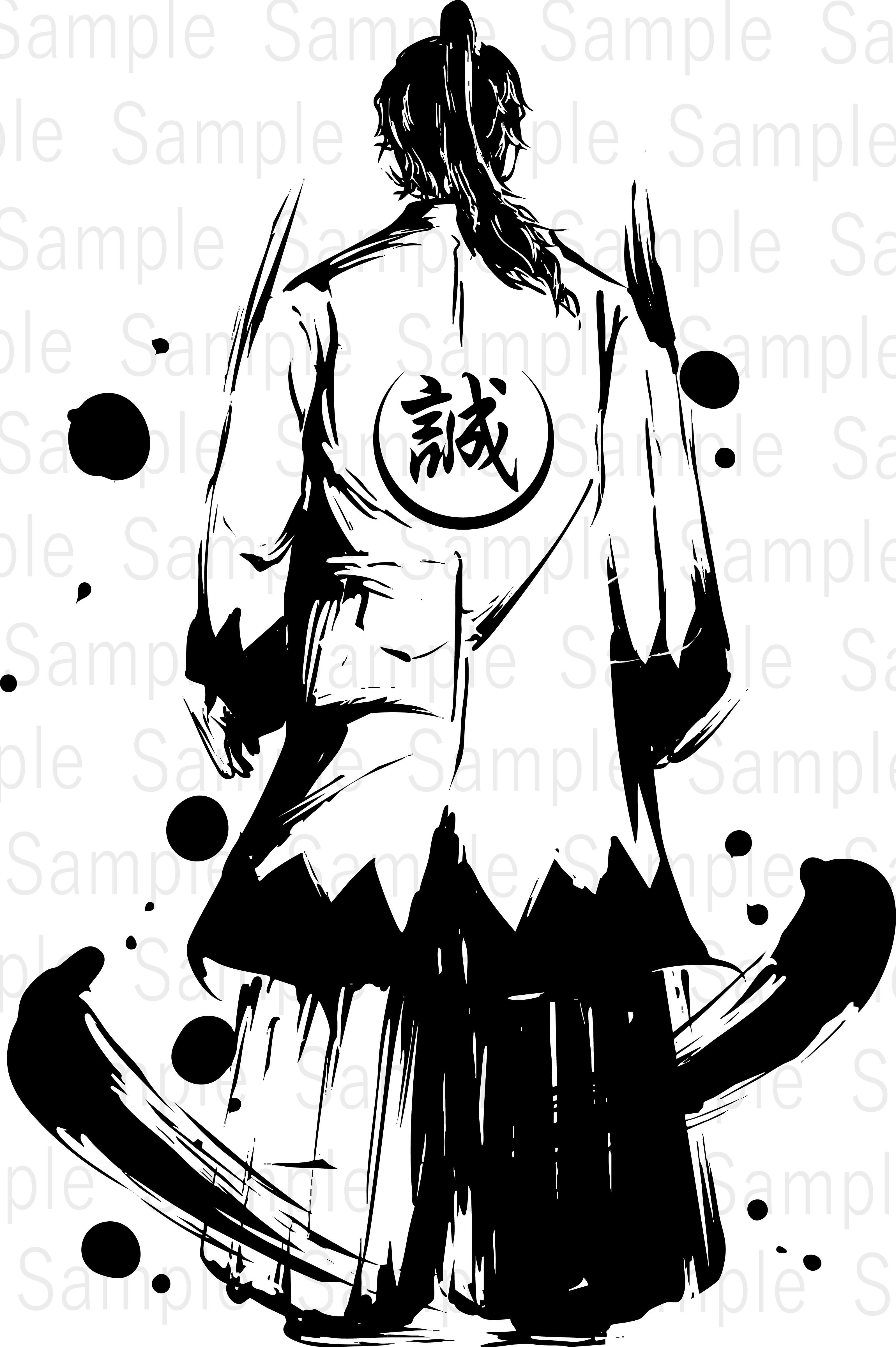 Tags: sumi-e, ink painting, Shinsengumi, samurai, makoto, haori, back view, Japanese style, loyalty, design material
