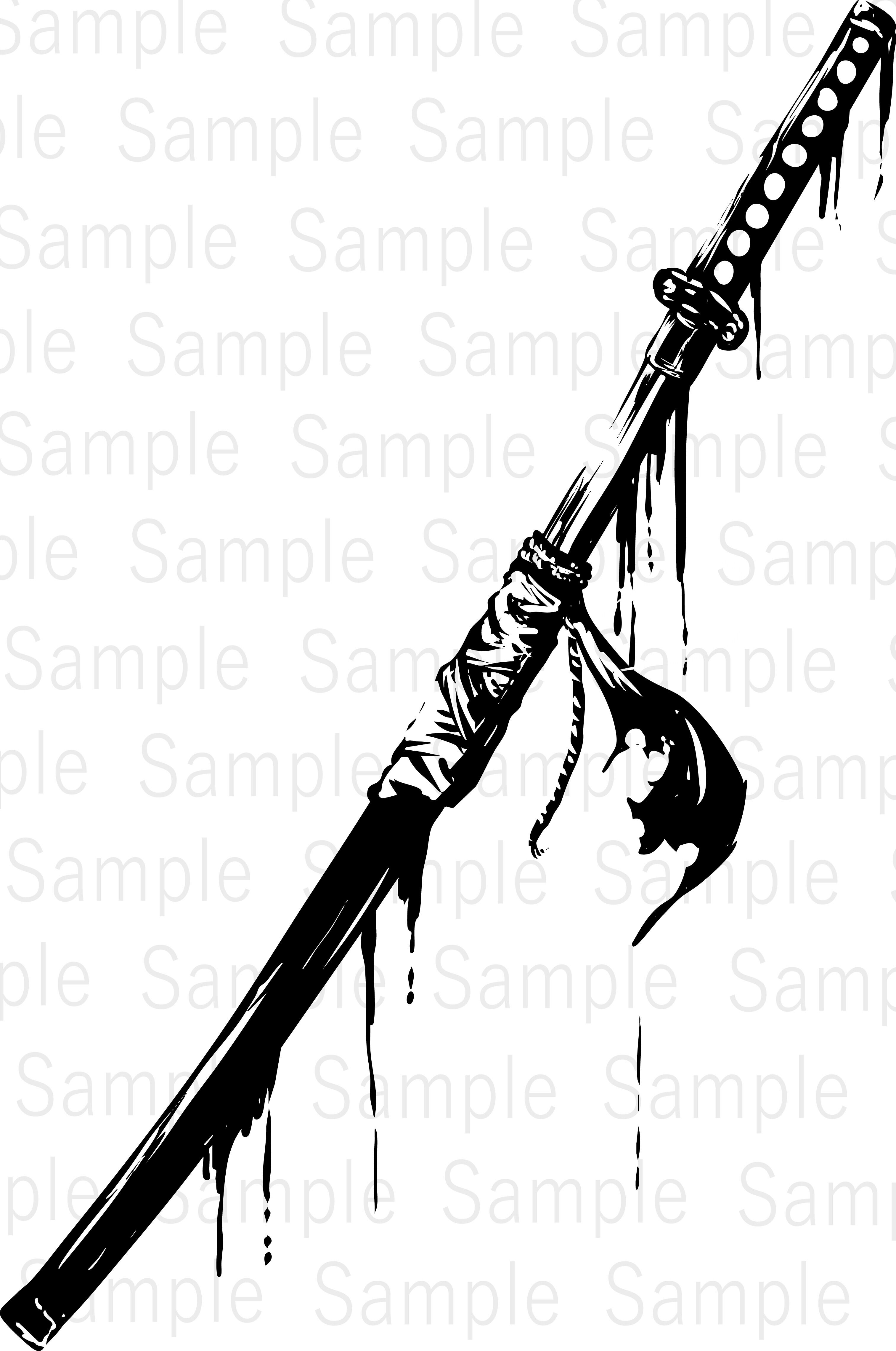 Tags: sumi-e, ink painting, katana, Japanese sword, bushido, steel, silence, Japanese style, design material
