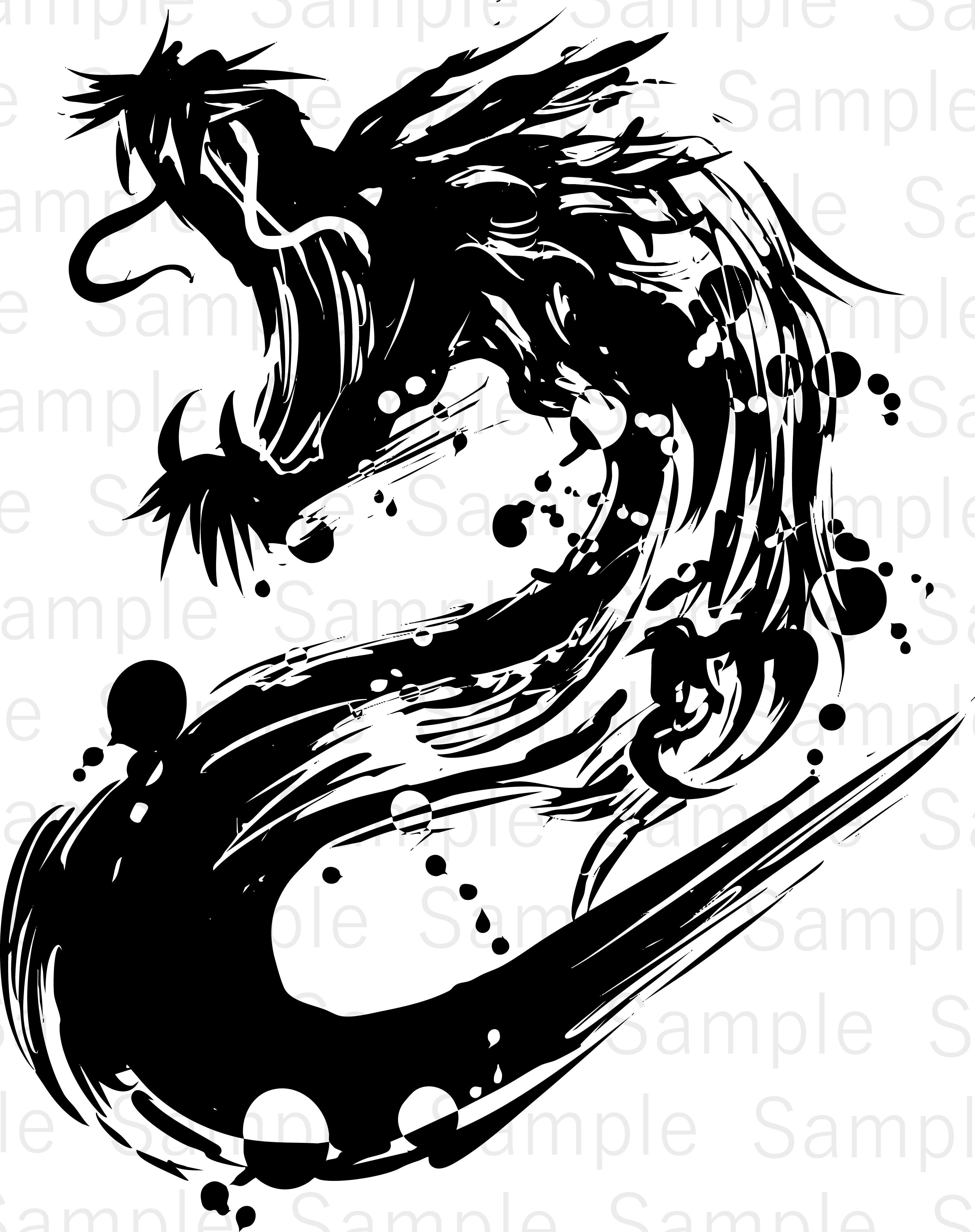 Tags: sumi-e, ink painting, dragon, spirit beast, mythology, Japanese style, symbolism, design material