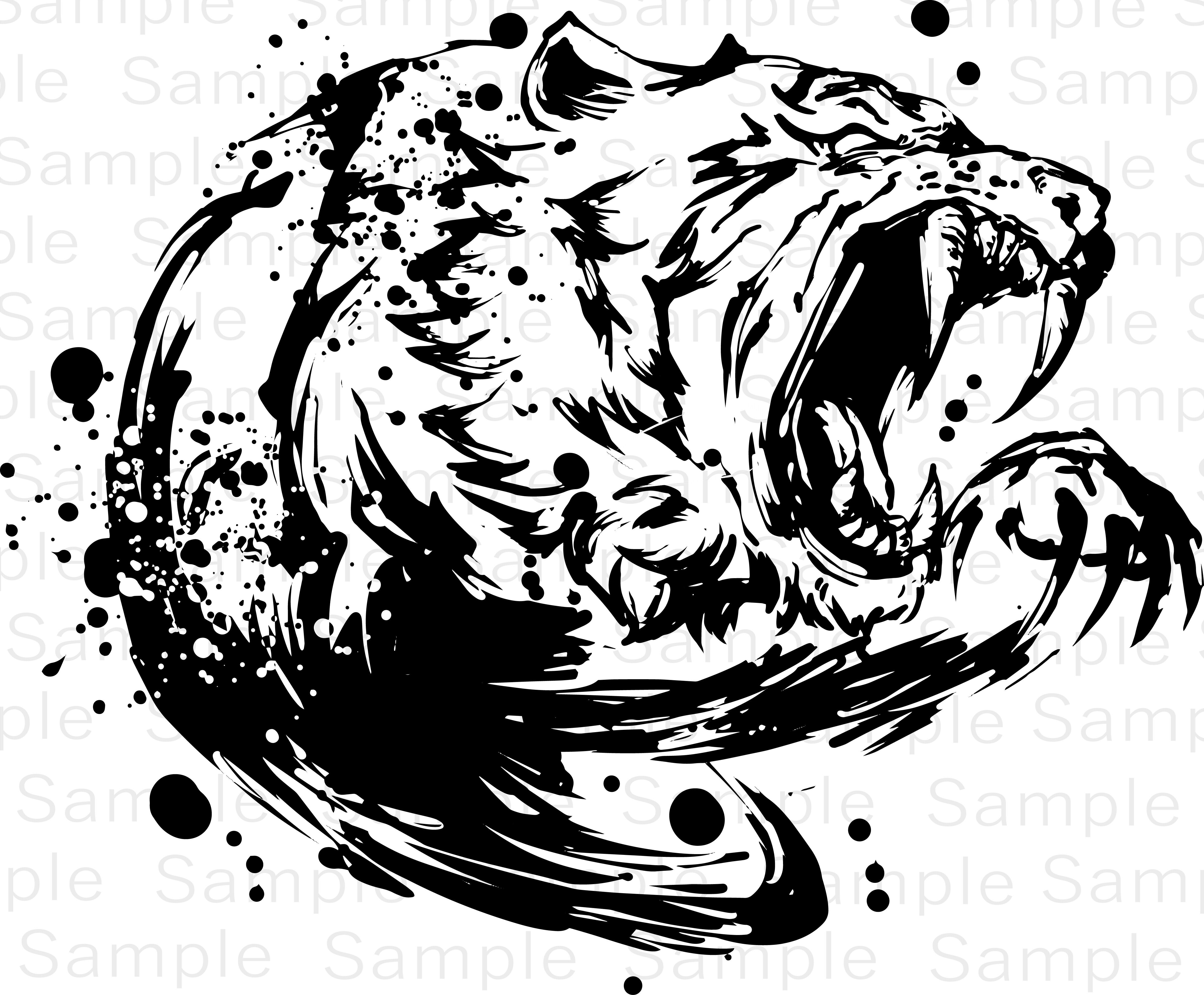 Tags: sumi-e, tiger, roar, guardian, wild, Japanese style, brushwork, PNG, JPG, AI, illustration material