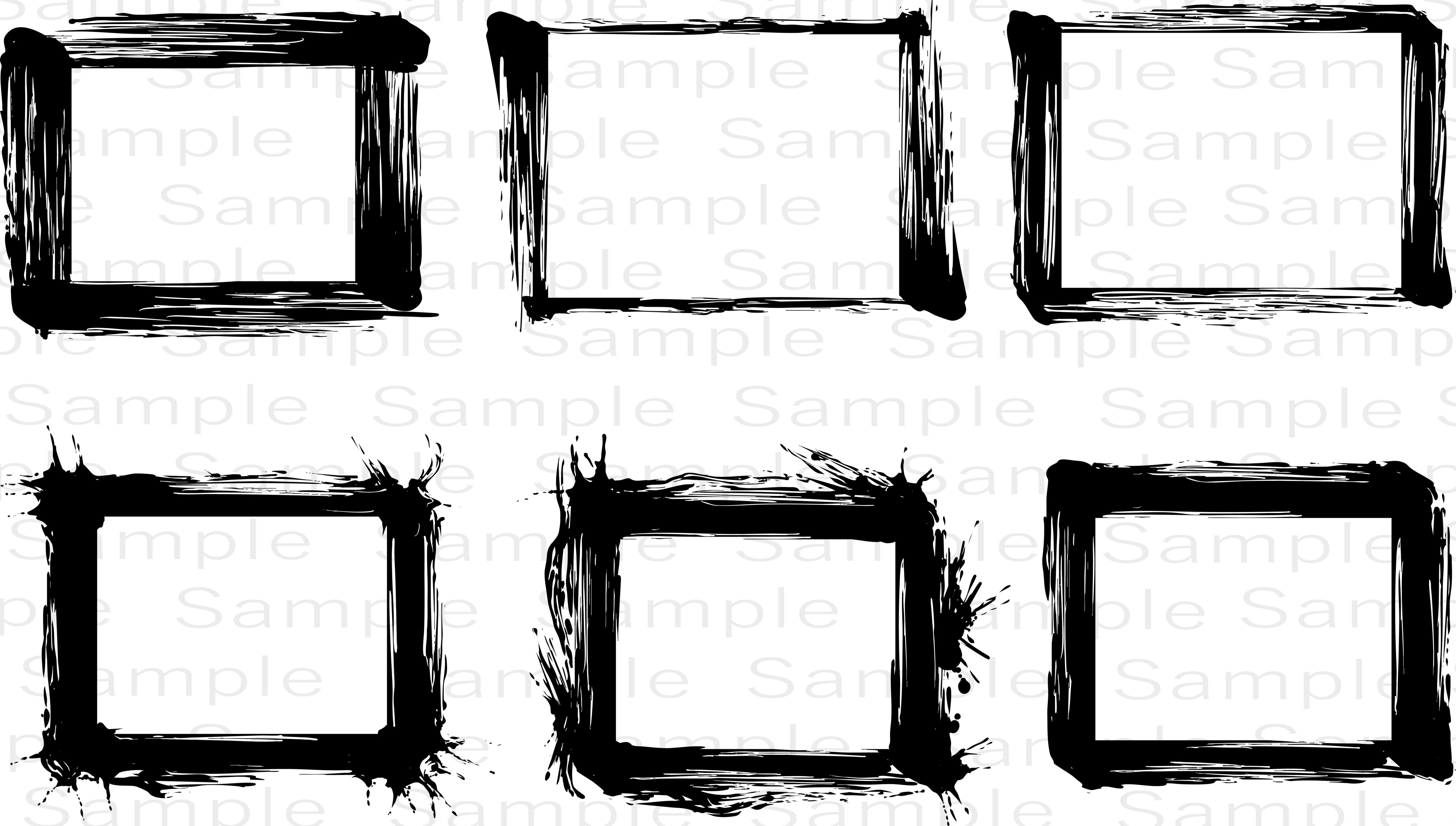 墨の筆致を活かして描かれた、四角形の枠を6つまとめた墨絵風イラスト素材です。