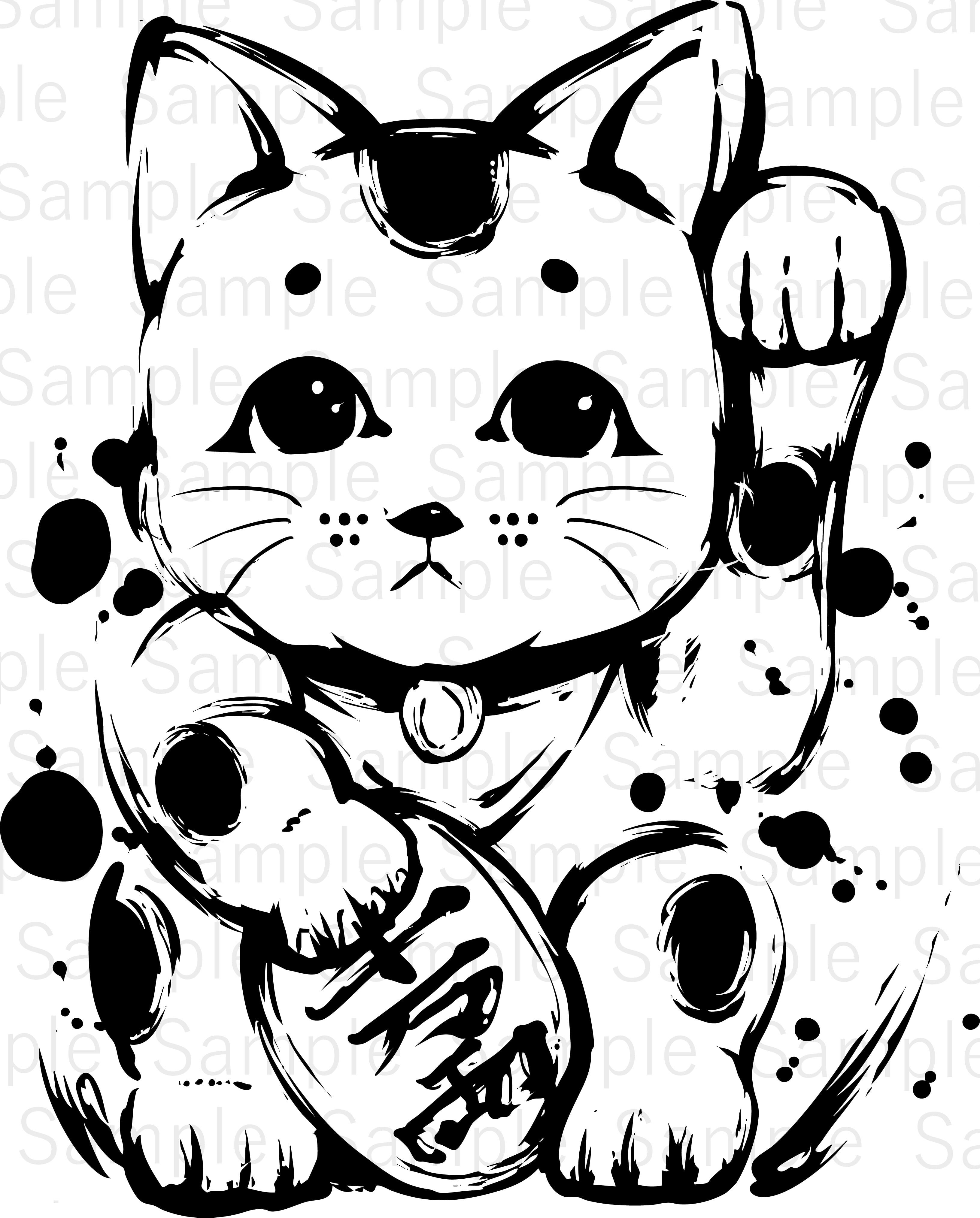 【関連タグ】墨絵 招き猫 縁起物 福 金運 商売繁盛 和風 素材 PNG JPG AI