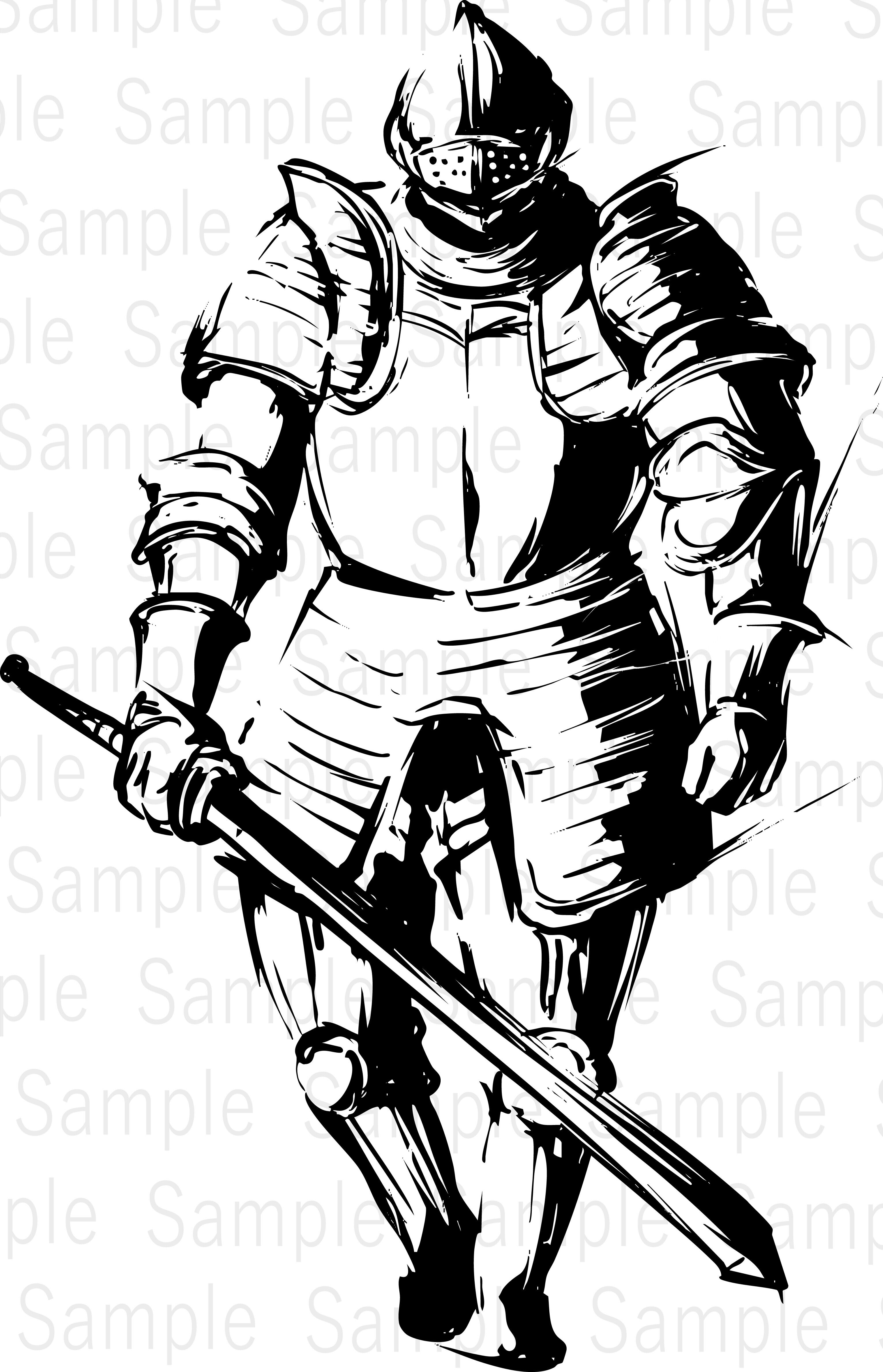Tags: sumi-e, knight, armor, Western warrior, spiritual strength, brushwork, PNG, JPG, AI, illustration material