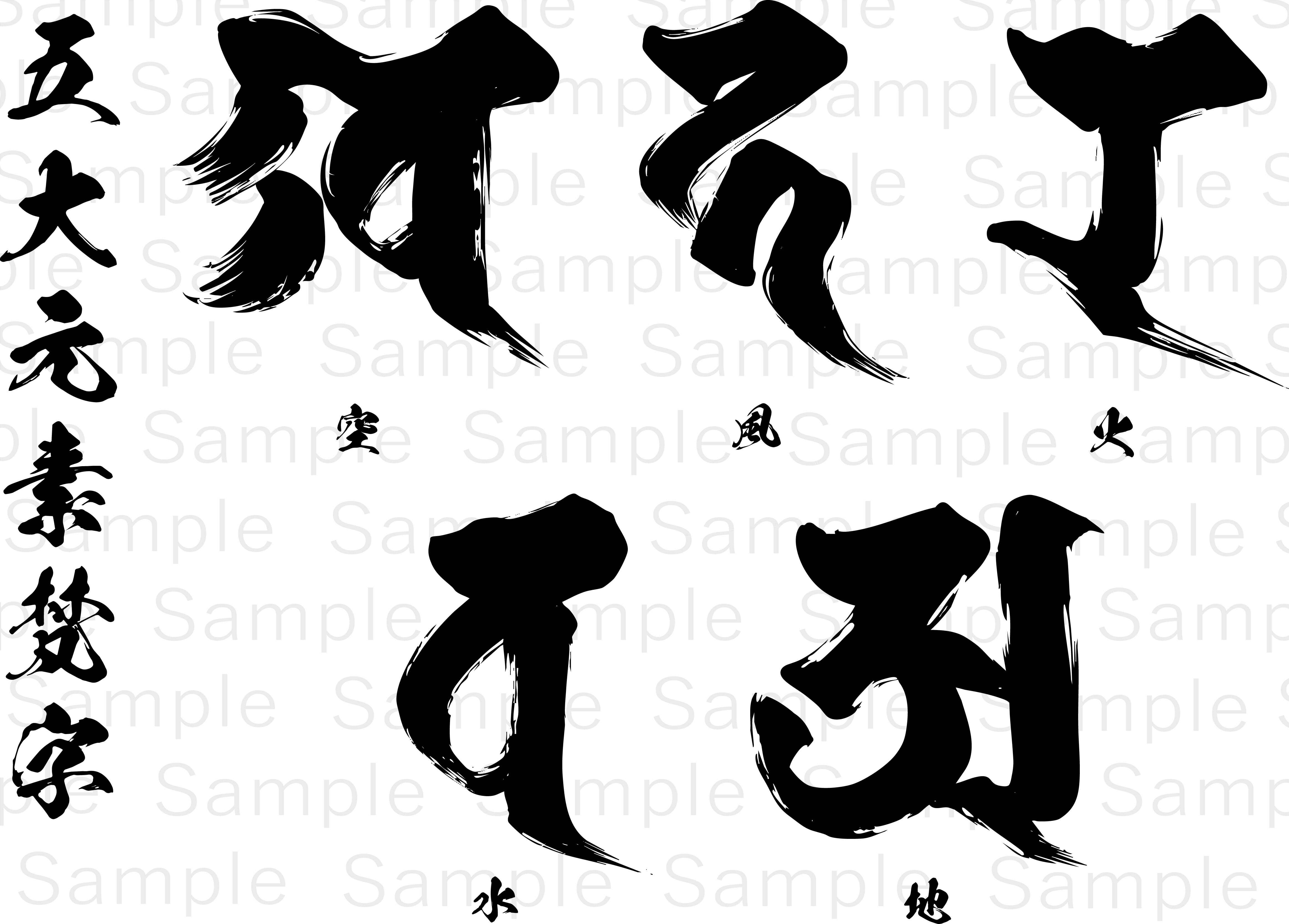 【関連タグ】梵字 悉曇 五大元素 地 水 火 風 空 筆文字 霊性 護符 和風 素材 PNG JPG AI