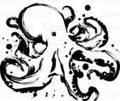 Tags: sumi-e, octopus, marine life, ink, spiritual creature, Japanese style, brushwork, PNG, JPG, AI, illustration material
