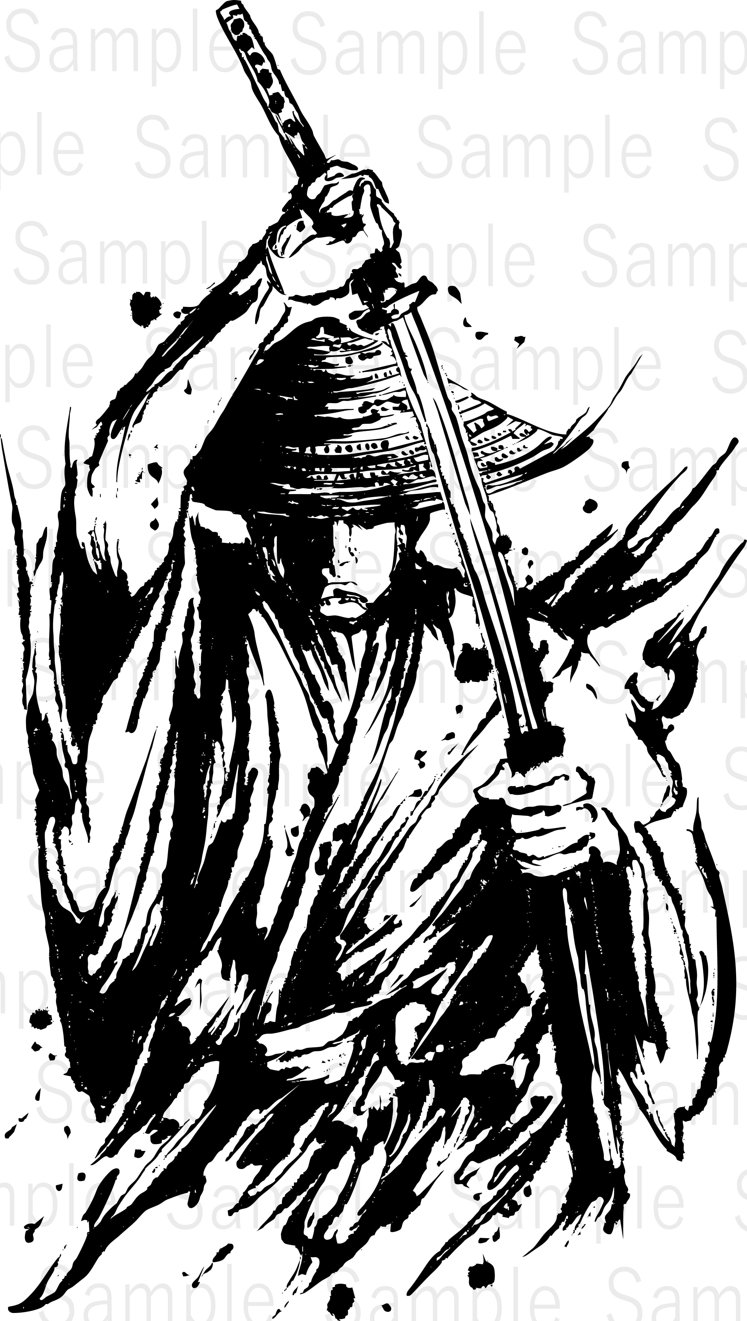【関連タグ】墨絵 侍 刀 抜刀 武士 和服 戦国 精神性 和風 素材 PNG JPG AI