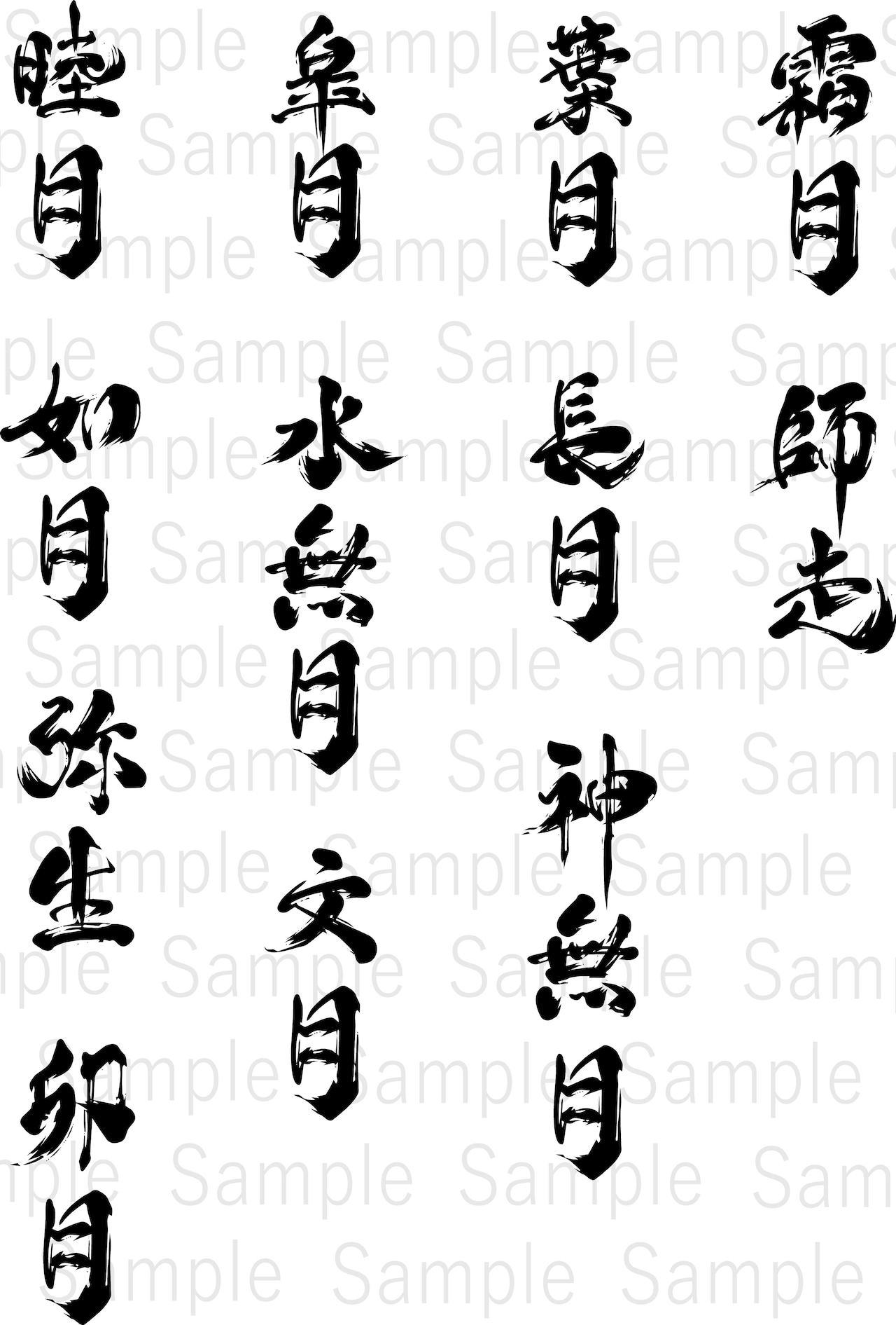 【関連タグ】筆文字 和名 睦月 如月 弥生 卯月 皐月 水無月 文月 葉月 長月 神無月 霜月 師走 和風 季節 素材 PNG JPG AI