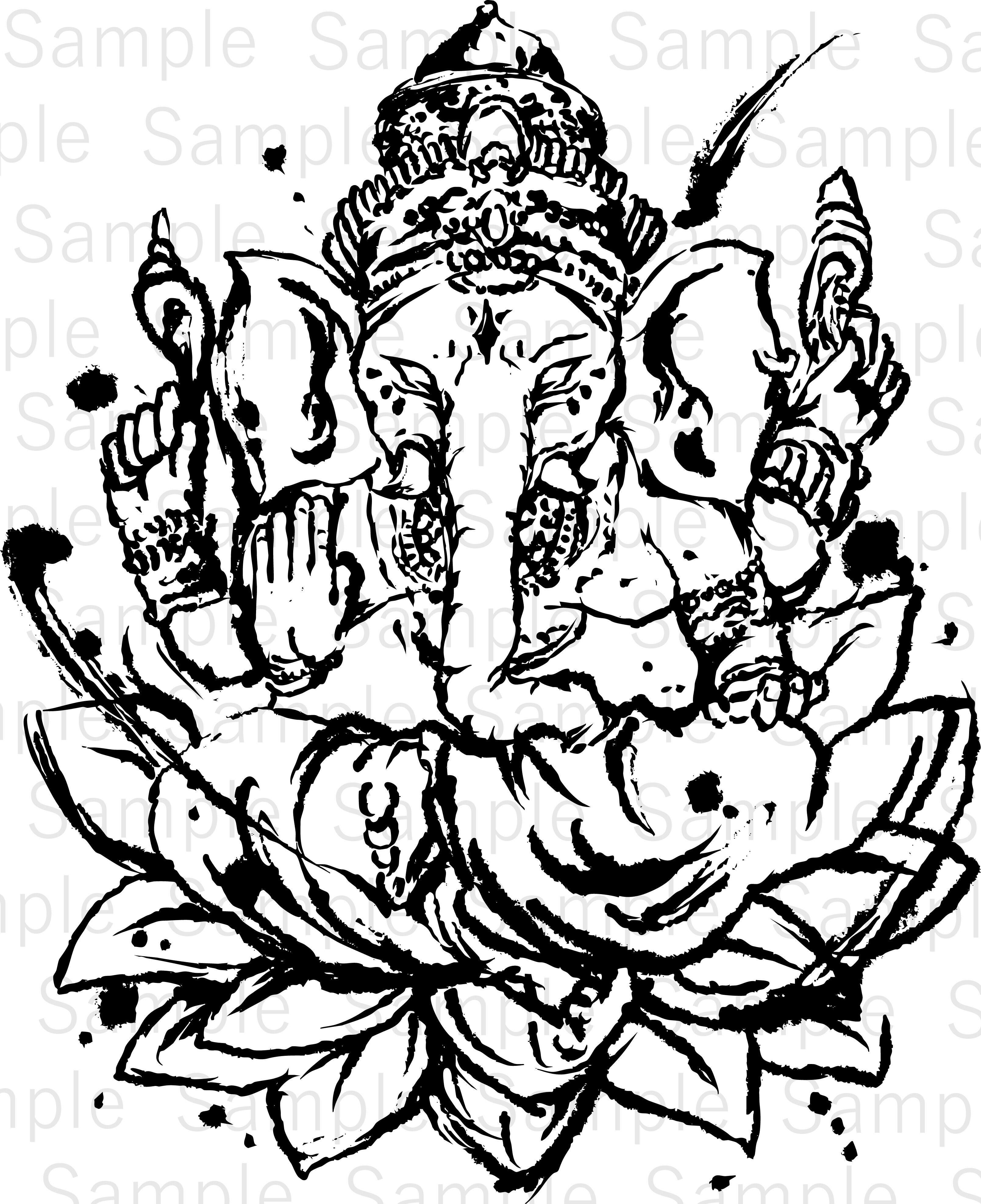 This sumi-e style illustration features Ganesha, the revered deity of wisdom, prosperity, and success in Hindu tradition.
