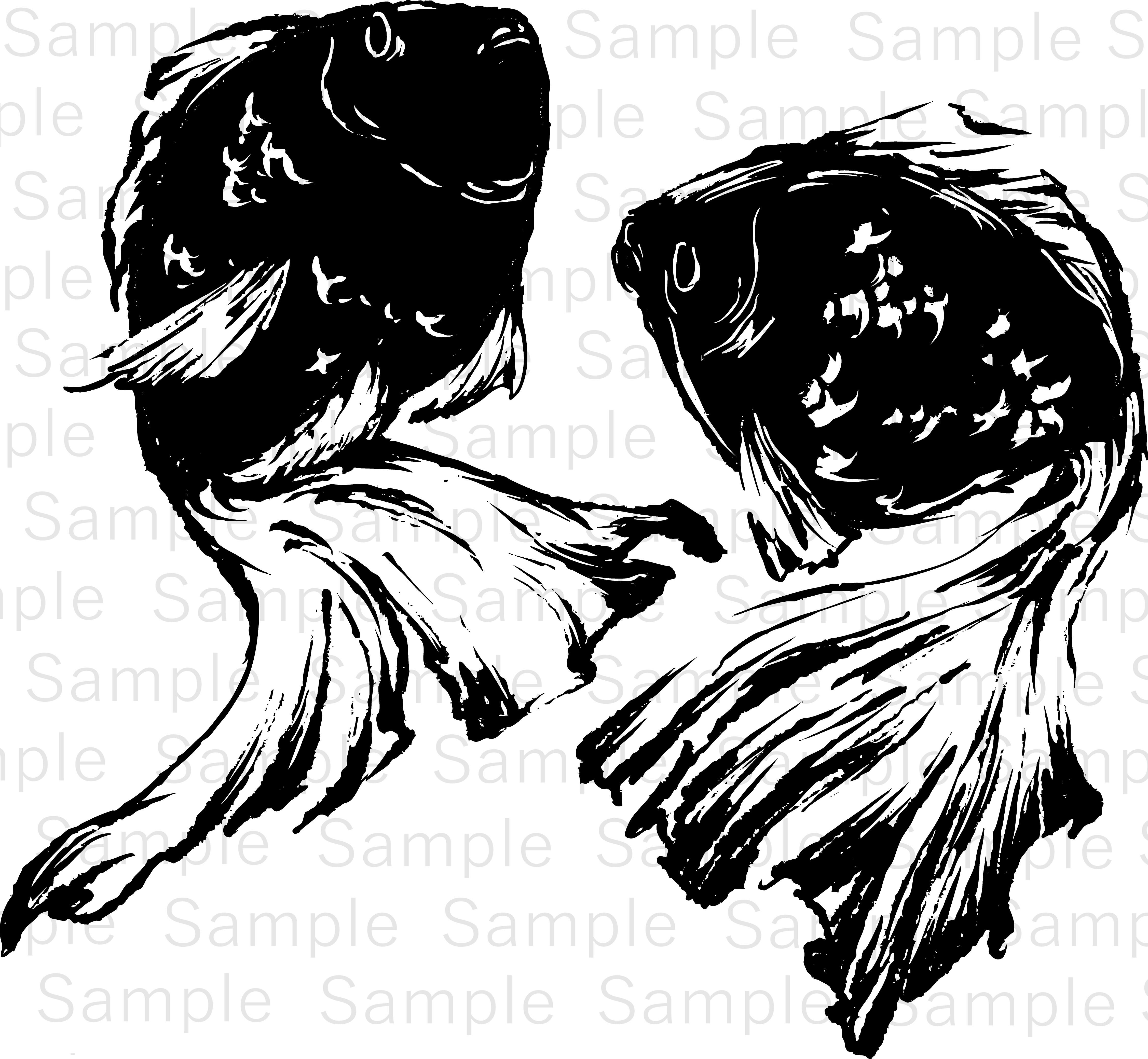 墨の筆致を活かして描かれた、金魚をモチーフにした墨絵イラスト素材です。