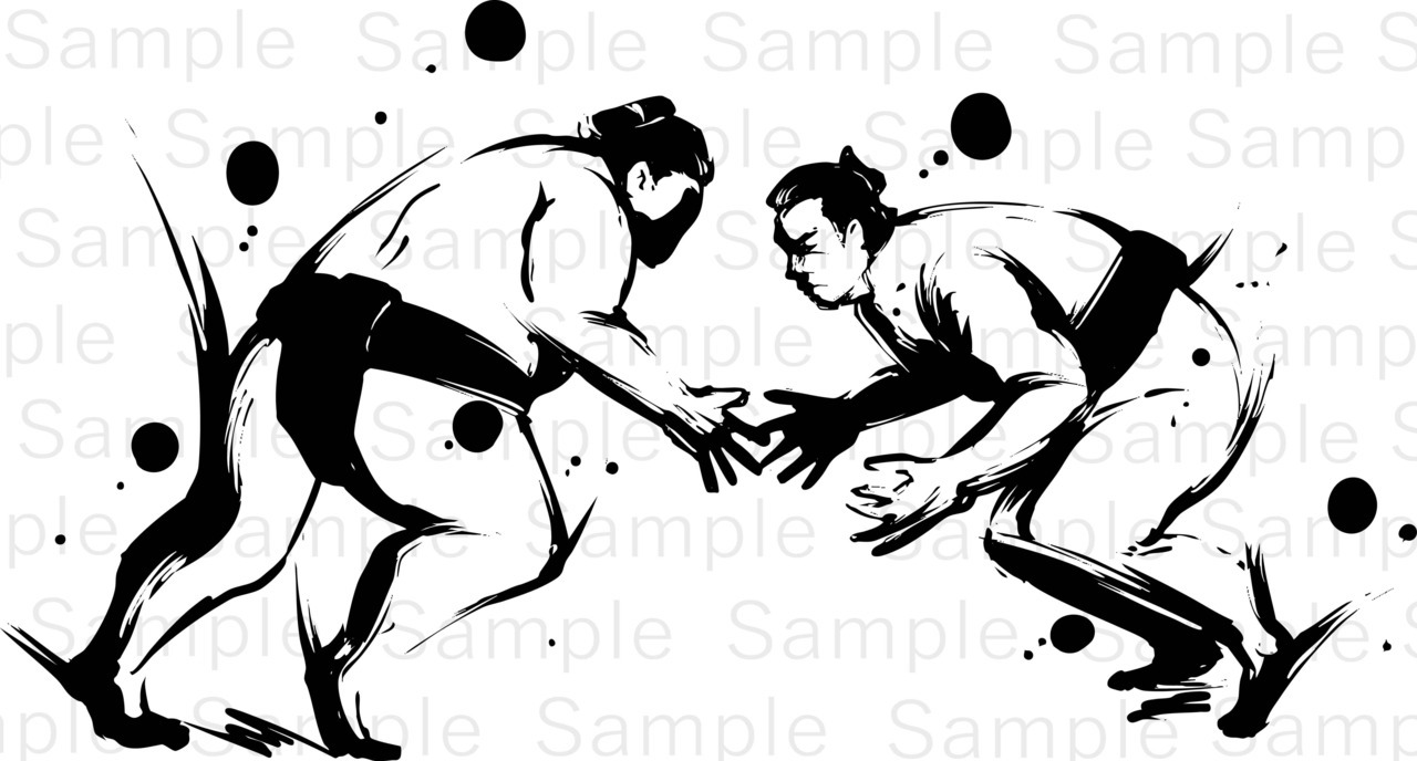 【タグ】 墨絵 水墨画 相撲 取り組み 力士 国技 格闘技