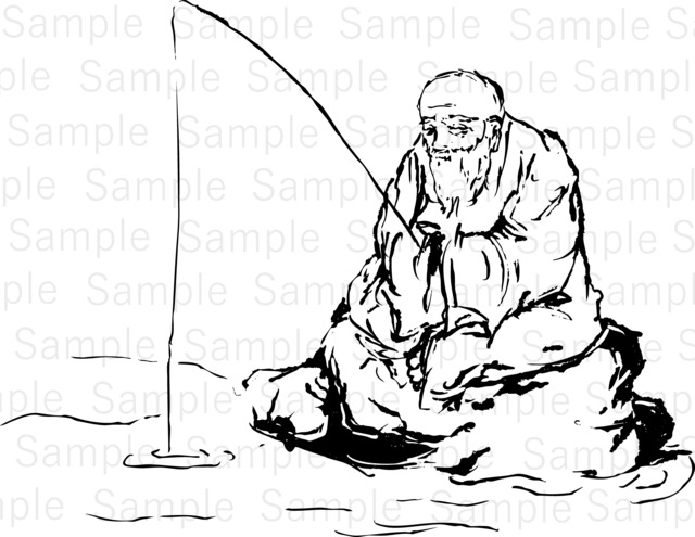 釣りをする和服の老人(Elder in Kimono Fishing)